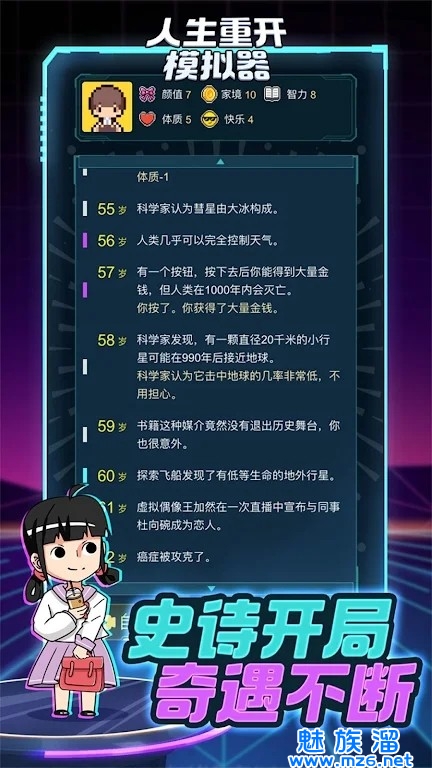 一款模拟经营类手游,以穿越为背景,让玩家扮演一位重生的主角,为自己的人生重新规划和选择,并通过收集资源、解锁技能和建立关系,打造自己的梦想人生。游戏采用了清新的画风和音乐,为玩家带来了一个充满可能性和想象力的世界,在这里玩家们可以去体验更多的乐趣和成就。玩家可以在这里开启全新的人生,定制人生计划,开启不一样的人生,根据你的选择,你的人生会发生各种改变。