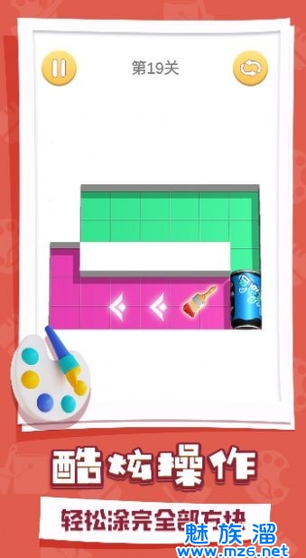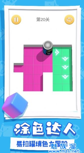 手指上下左右拖动控制易拉罐,给每个方块都填上颜色,让易拉罐在你的掌控下自由奔跑。3D立体感十足的易拉罐或倒着或立着,随意翻滚自由涂鸦,想怎么翻就怎么翻!