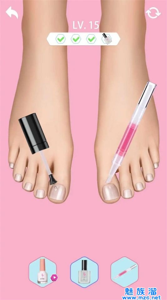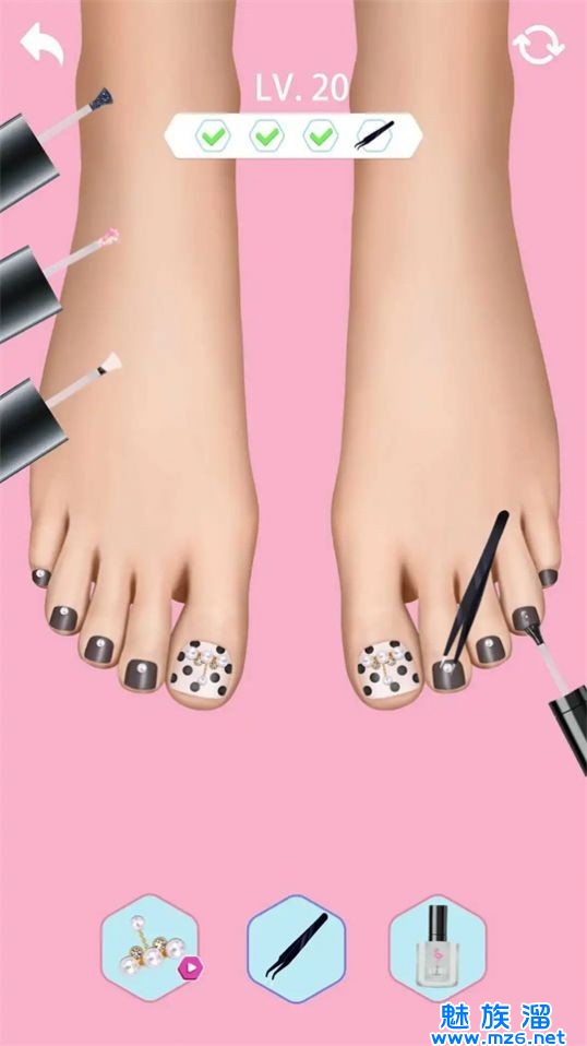 3、按照游戏指示进行足部护理,同时可以尝试使用不同的护理坐垫、按摩器具。
