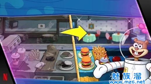 1、进入海绵宝宝比奇堡餐厅,扮演厨师,自由挑战不同任务;