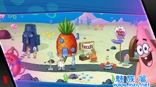 3.探索海绵宝宝的世界:在比奇堡.酷乐湖等地区探索熟悉的餐厅和新厨房。