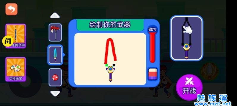 4、游戏以绘制武器为主题,玩家需要选择不同的策略和方案来闯过各种难关。
