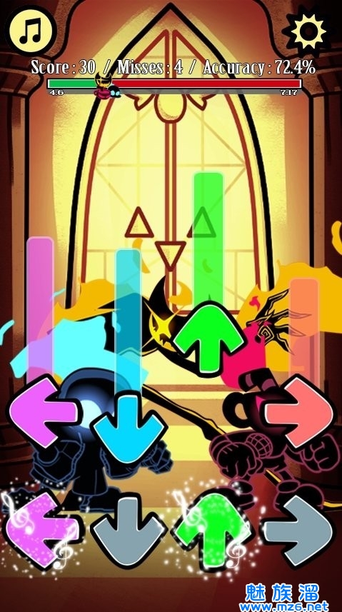 2、如果你的打击没有跟上音乐的节奏,你就会失误,如果失误次数过多,则将失败挑战;