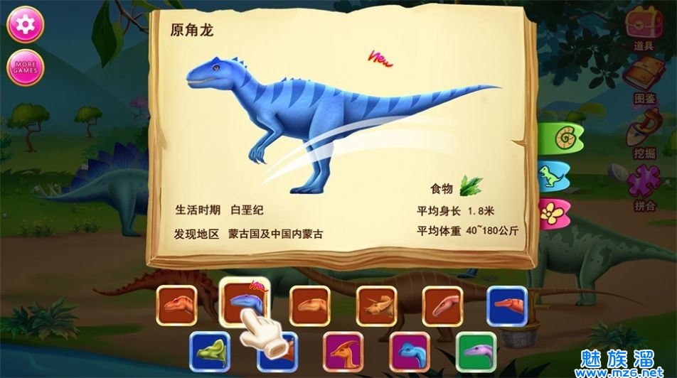 3、深入了解恐龙的历史,同时也能够在玩游戏的同时来学习有关恐龙的科学知识。