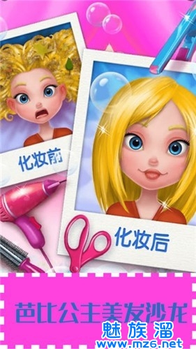 1、芭比公主美发沙龙是一款休闲装扮类游戏你要给游戏里的美少女们进行各种妆容以及发型打扮。