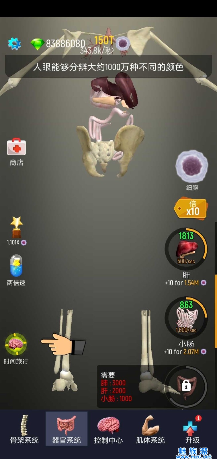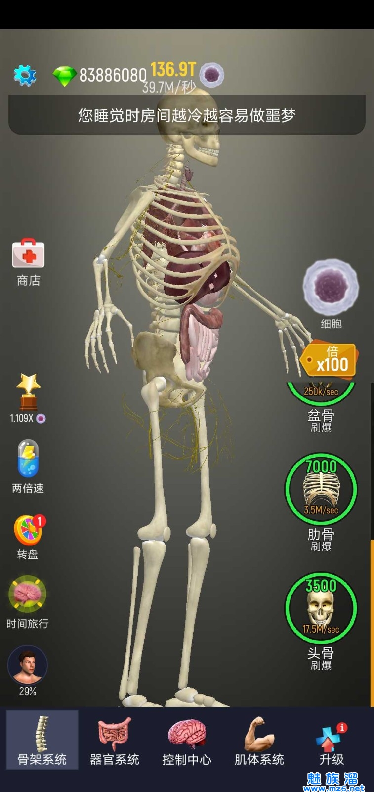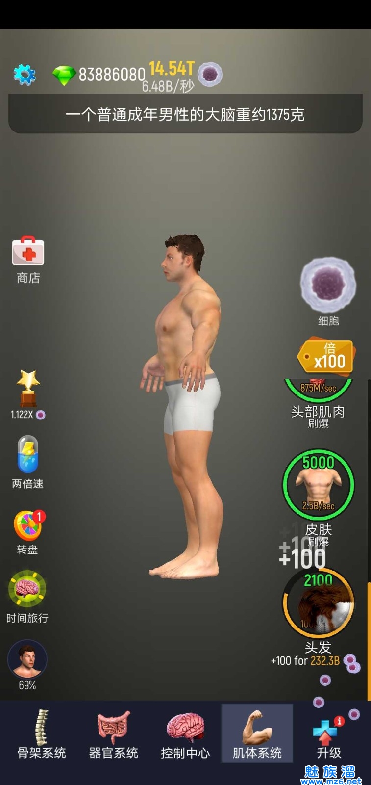 2、从最先的骨架开始解锁,小编这里拥有无限制钻石所以直接用钻石购买了100T的细胞开始养成;