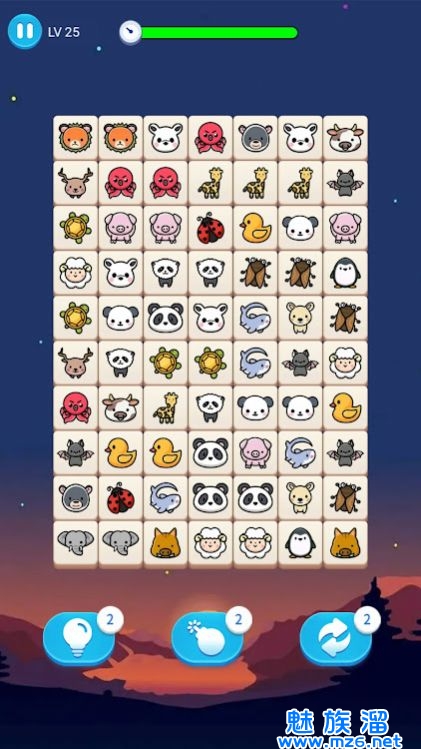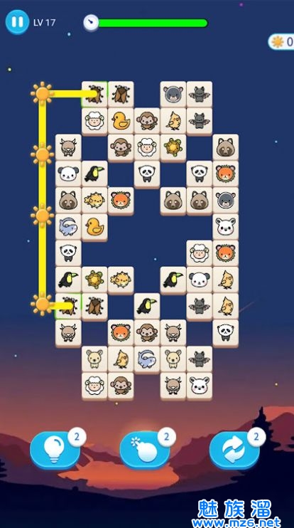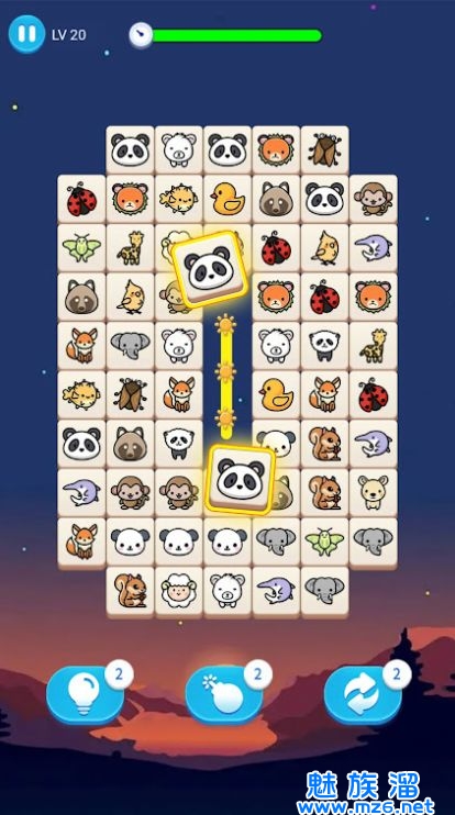 1、可以通过鼠标或者手指来进行游戏,将两个相同的动物位置连接在一起。
