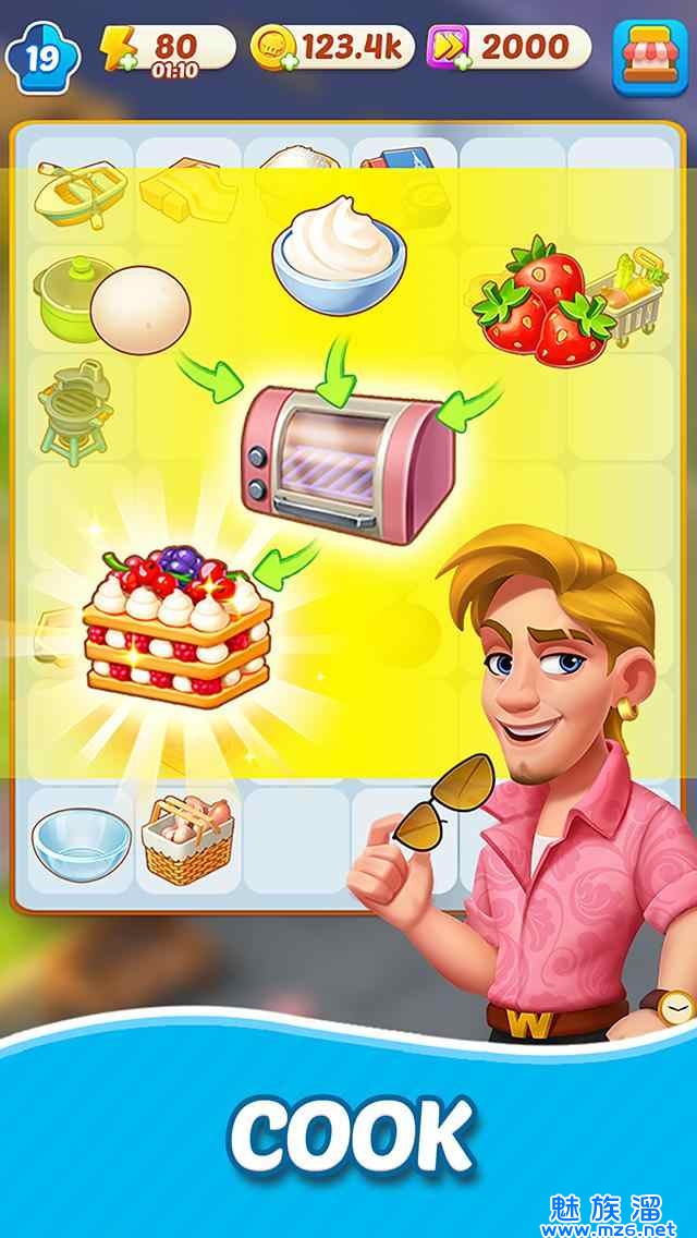 2、玩家可以将相同种类的菜品合并在一起,创造更高级别的菜品;