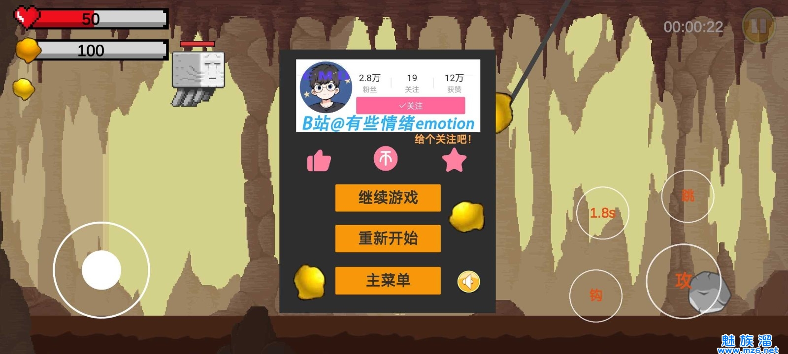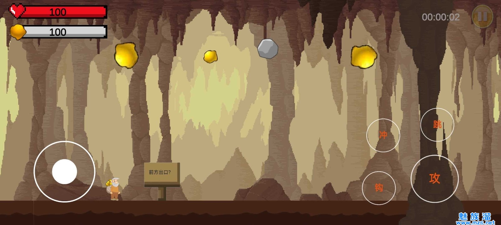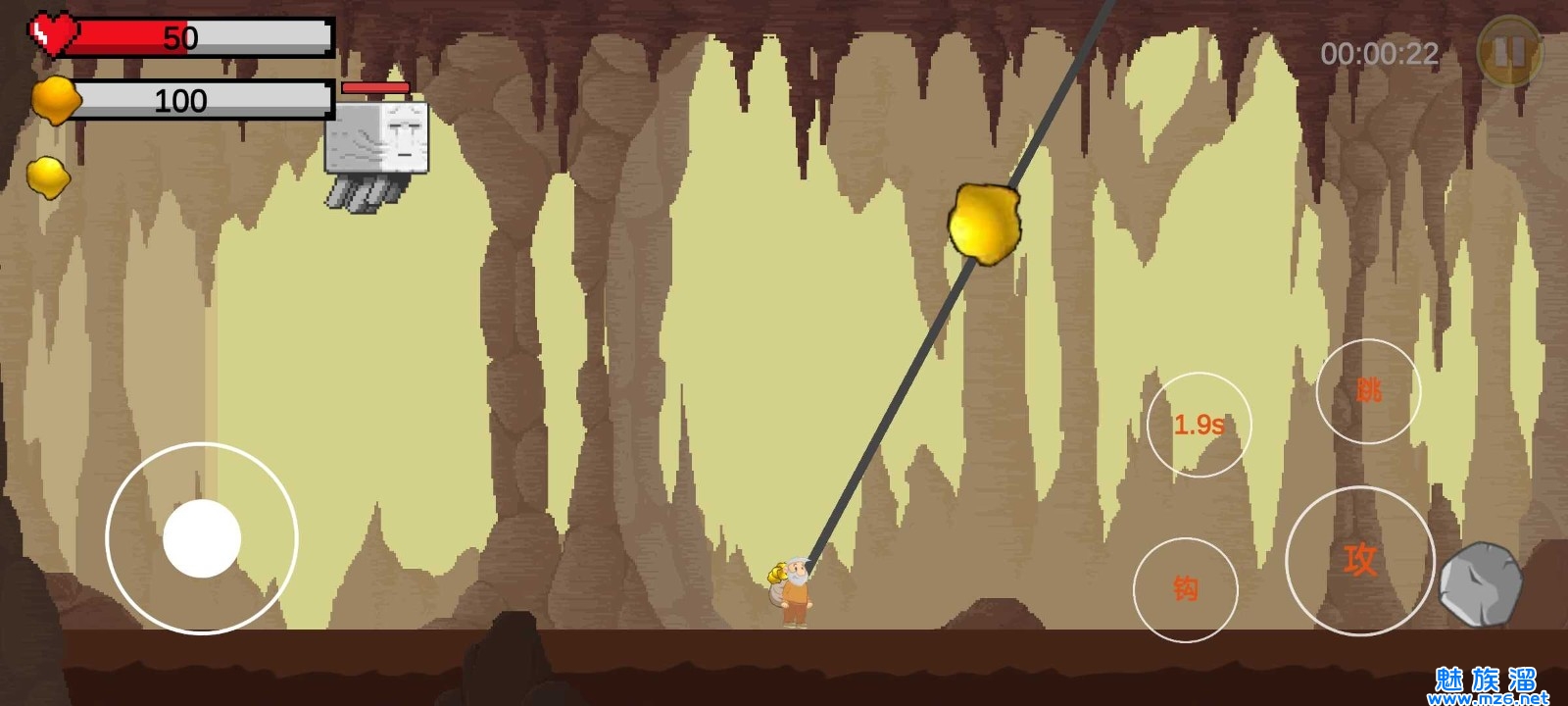 【黄金特工】这是一款由B站UP主有些情绪emotion自制的魔性射击游戏,以经典黄金矿工游戏为蓝本制作,我们的矿工老头将会踏上逃脱战斗之旅,矿洞即将坍塌,但是前方会有很多怪物障碍,不断的提升自己的武器战斗下去吧。