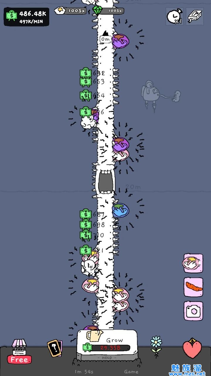 【懒鹅】大量货币使用!在异世界中,你可以种植一种叫鹅树的树,没错,这种树的枝丫都会是一个个鹅头,非常的魔性!给它们浇水,喂养它们,升级它们并与它们互动。好玩的主题剧情会慢慢的出现,所有的发展都是随机自由的哦。