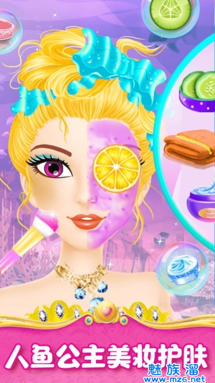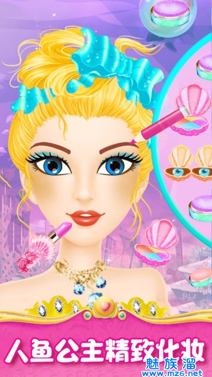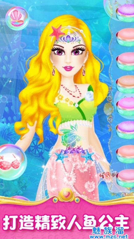 3、为公主设计美丽而独特的海洋妆容,换上新衣服。