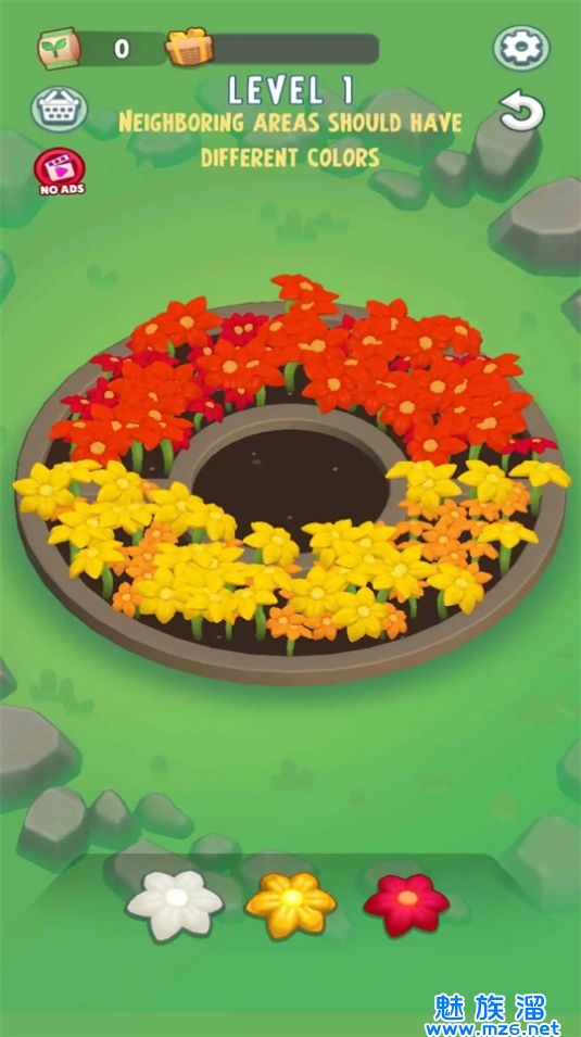 1、接下来,玩家需要用各种颜色填充花园中的空白区域。