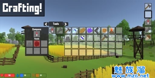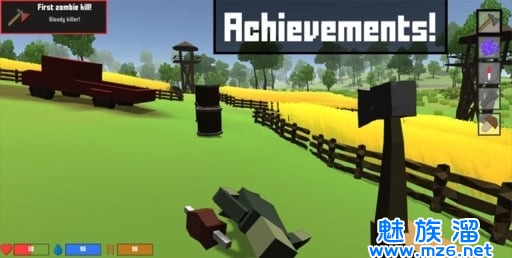 2、游戏中玩家您可以从库存工艺的各种项目,建造房屋。你有两件武器 - 斧头和枪(沙漠雄鹰),帮助您远离死亡。你必须挖掘金属制作子弹到你的射手的枪。