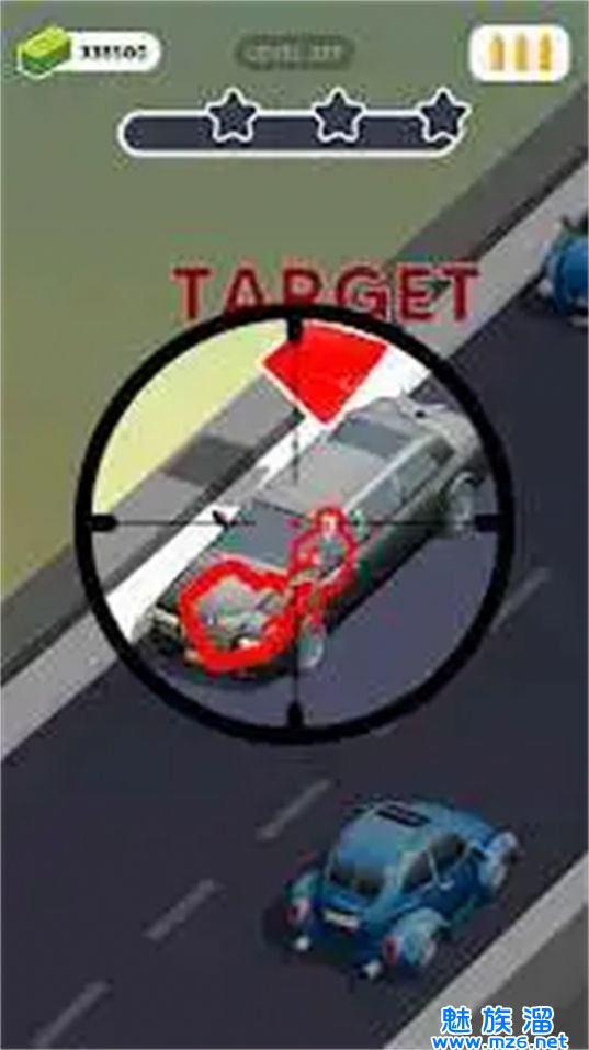 1、在关卡中玩家需要使用精准的狙击技巧,射击汽车上的敌人,迅速击退他们,保护己方的目标。
