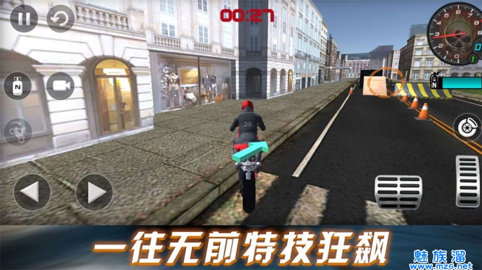 1、玩家需要使用高速行驶、漂移、跳跃和摩托技巧来过关斩将。