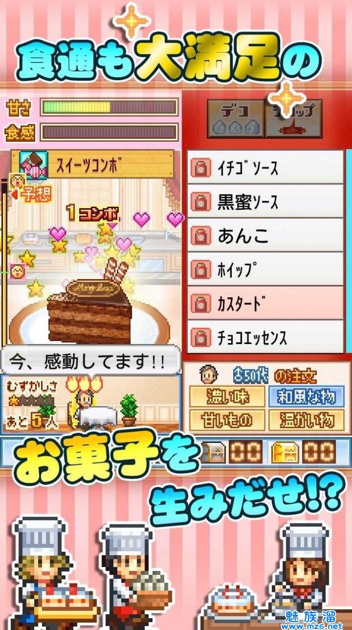 【创作糕点部】开罗游戏推出的一款模拟商业游戏,你需要经营自己的糕点店,你需要做各种糕点来满足不同的客户哦,创建糕点这些任务可以选择,你可以升级扩大他们的商店,招募更多的员工为你工作,让你赚更多,喜欢下载!