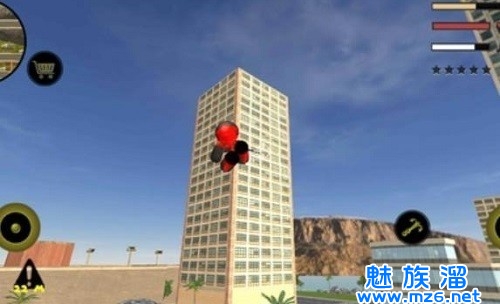 左侧移动、加速,右侧绳索,攻击(跳跃),跳跃,右上侧的武器更换以及血量、经验的显示都实时更新,一览无遗,凭借着大家自由的玩法,与其他帮派的人物进行交火,期间杀人能够获得经验,杀多了会产生星级,警察和其他附近角色会特殊照顾你对你展开火热的进攻,而如何存活,如何将其他人物击杀则是你所需要完成的任务。
