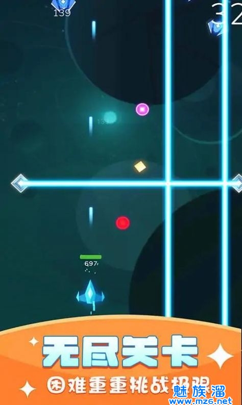 2、关卡设计精巧,风格涵盖星际战场、陨石带等多样的宇宙环境。