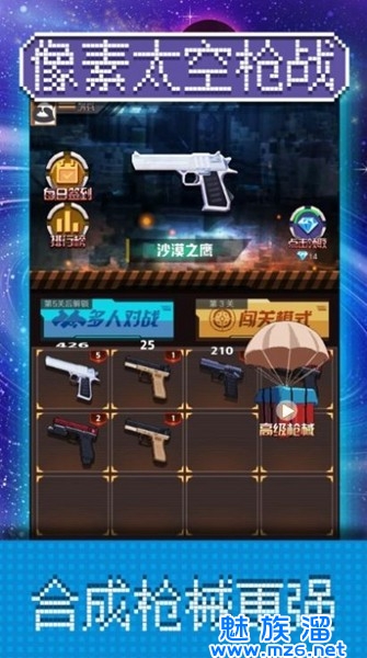 像素太空枪战,很不错的枪战游戏!游戏采用了像素的风格,让我们在太空中展开射击大战。这里会有经典的吃鸡模式,还有很丰富的武器系统,这些都可以让你自由的使用战斗,组成自己的小队一起战斗,要是你感兴趣的话那就来下载吧。