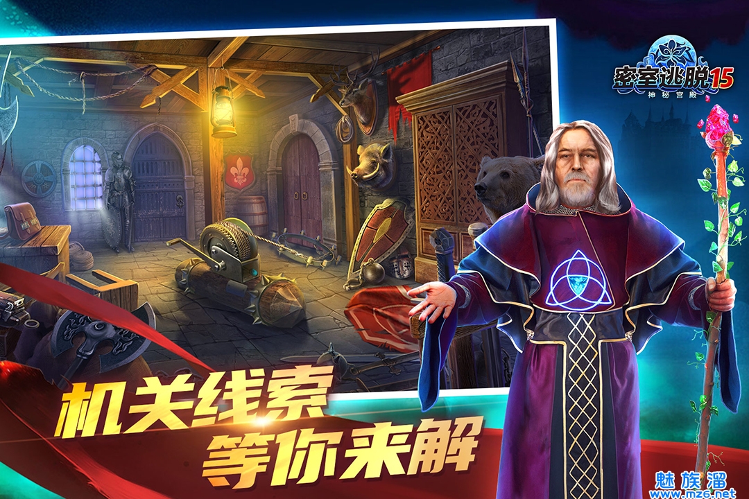 一款烧脑趣味的冒险解谜益智游戏,这也是密室逃脱系列十五部游戏作品。故事讲述的是主人公被困在一个神秘的宫殿,要完成一个重要的任务,这个王国的预言家告诉他,他看到了一个可怕的幻想,这座塔再次活跃起来,比上次带有更多的黑魔法,上次你是为一个人而逃出来的,现在我们的王国需要你的帮助,请帮助这个国家吧。另外在密室逃脱15神秘宫殿游戏中,背景设定回到了最初也是最经典的欧式阴森古堡,但是无论是游戏的画面还是谜题设置的广度都有了相当大的提升,相隔十多个版本后的相似背景的作品,玩家可以从中感受到制作团队在版本更迭中的进步与创新。