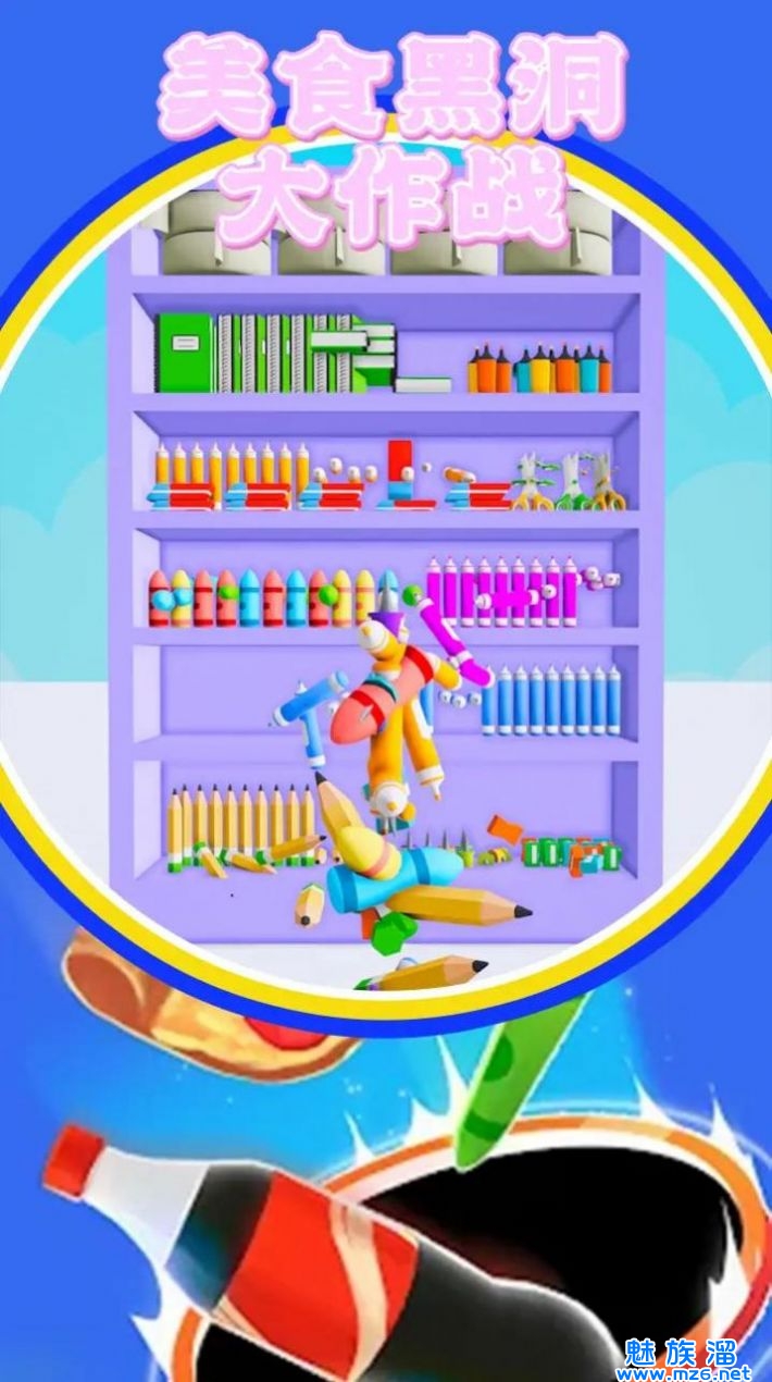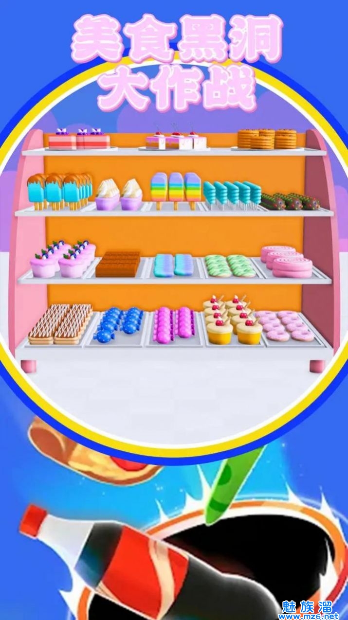 美食黑洞大作战休闲益智游戏, 在游戏中,玩家需要控制一个黑洞,不断吞噬各种食物,避免对障碍物和敌人的追求,吃尽可能多的食物来提高分数。 同时,游戏还有多个关卡和挑战模式,玩家可以根据自己的喜好选择不同的游戏模式进行挑战。