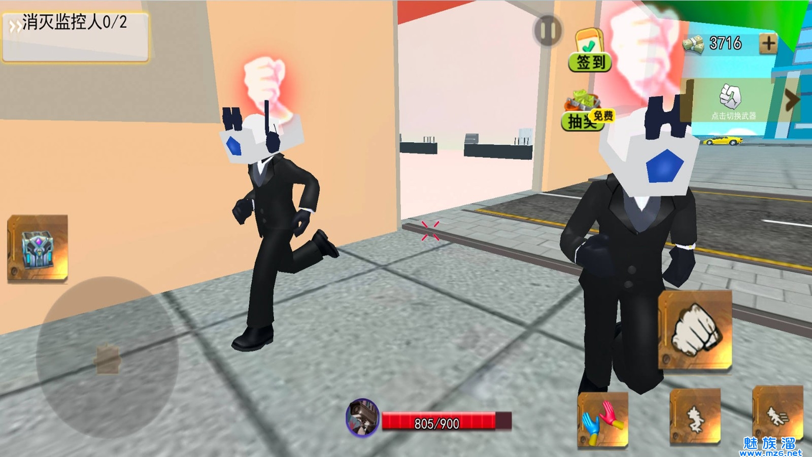 1、展示你的格斗技巧,使用拳击、踢腿和特殊技能,与马桶人进行激烈的战斗;