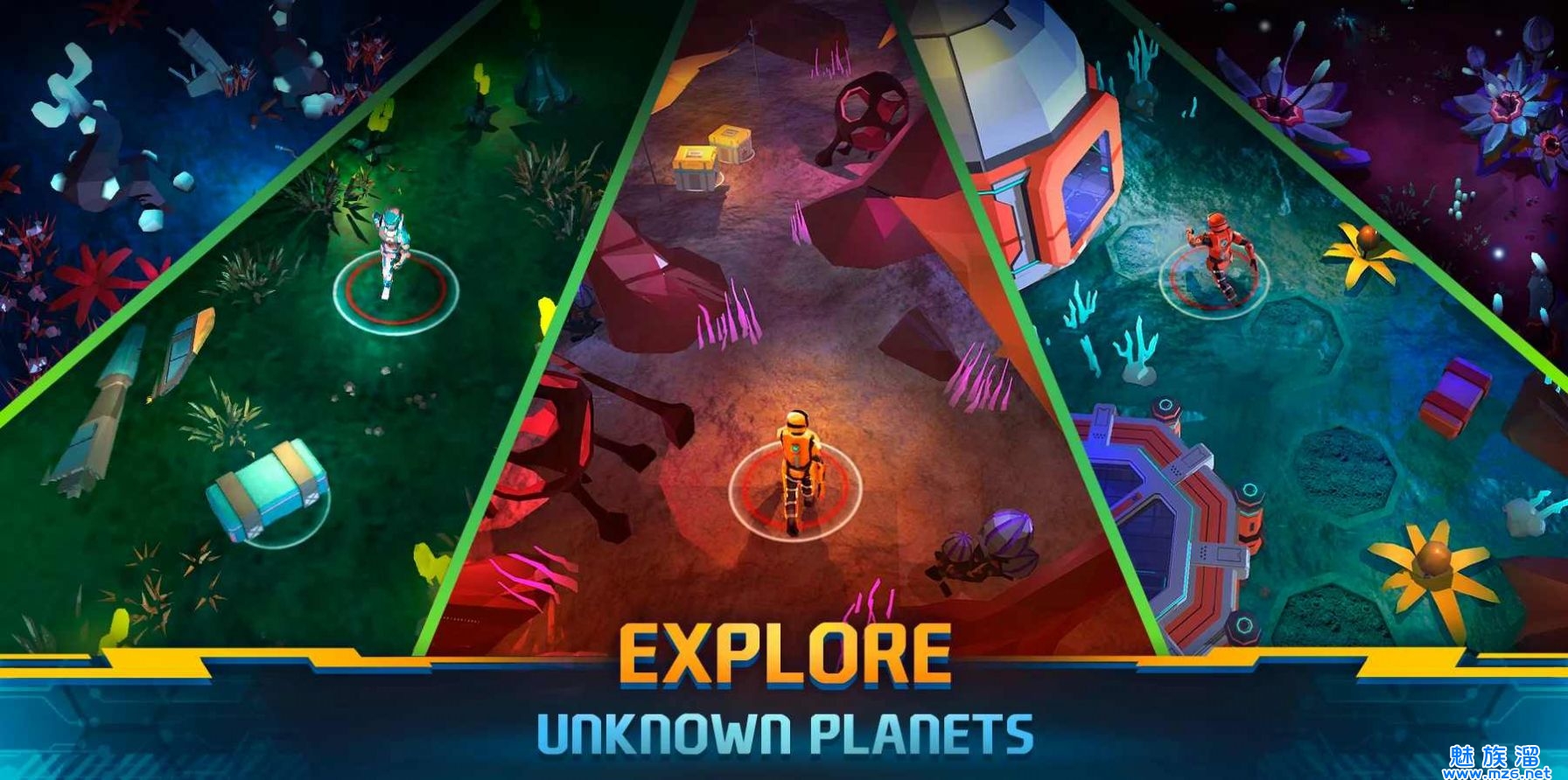 1、让你探索未知的星球和恒星系,还能建立基地和收集资源进行生存。