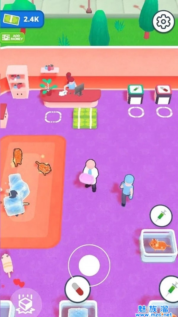 1、玩家需要经营一个宠物医院,照顾各种不同种类的宠物,包括狗、猫、鸟等等;