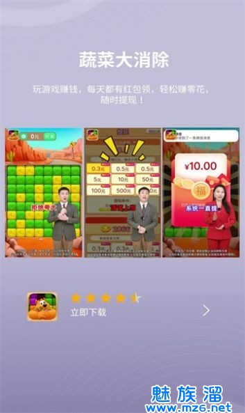2、随机红包奖励,通过消除方块获得红包,奖励金额随机,意外惊喜不断。