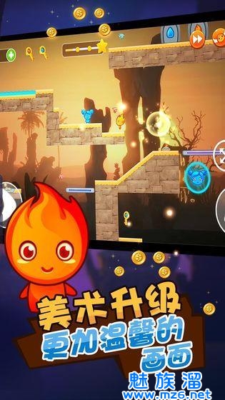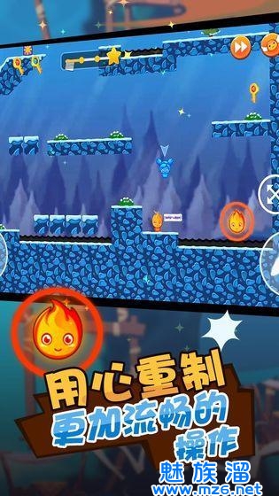 1、经典的冰火角色进行挑战,玩家可以操纵熟悉的角色来不断闯关前进;