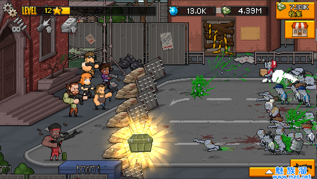 *采用点击放置玩法,玩家可以通过收集武器资源在僵尸末日下生存。