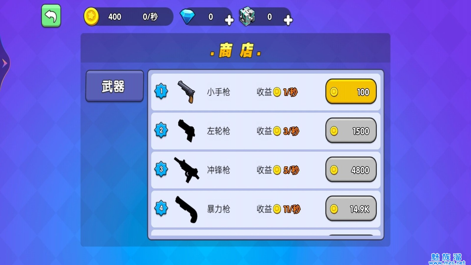 1、具有各种类型的兵器供玩家挑选,包括近战兵器、枪械、爆破物品等;