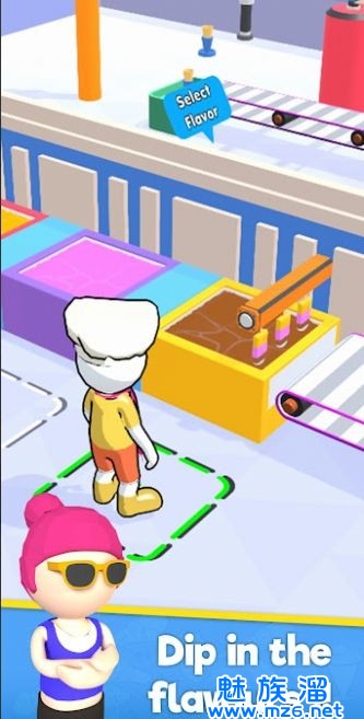 放置冰淇淋工厂游戏是一款放置类游戏,玩家需要建造、经营自己的冰淇淋工厂,生产不同种类的冰淇淋,赚取收益并扩大自己的生意,采用了精美的画面和音效,游戏绿色清新,色彩明快,巧妙地呈现出了冰淇淋的制作过程和品质。