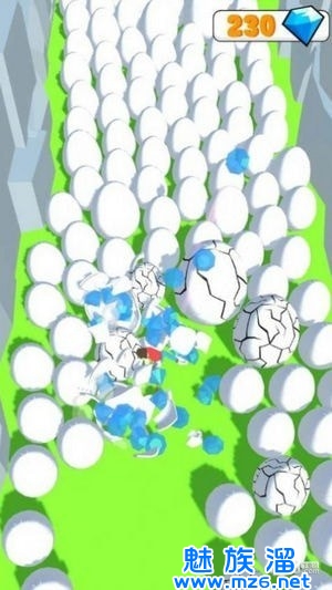 2、经过操控小人的移动轨迹和斧头的方向,您能够破碎鸡蛋并得分;