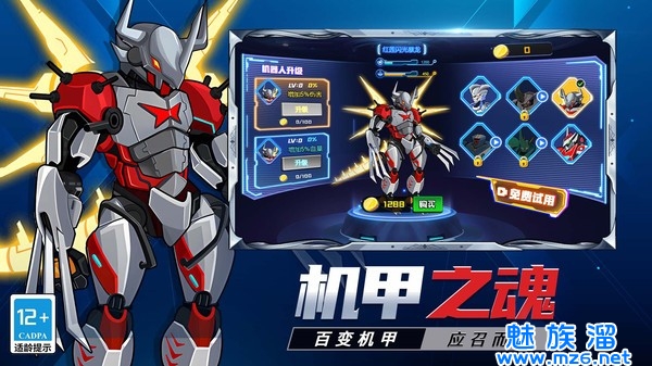 2、而且我们为每一种机甲都编写了详细的背景故事、属性介绍和强化办法;