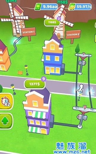 放置风力发电游戏是一种模拟经营游戏,玩家需要建造风力发电机、升级设施以及管理资源来获得收益。游戏的核心玩法是放置式的,玩家需要不断地放置风力发电机来增加电力输出,从而获得更多的金币。玩家可以通过升级发电机、购买新设施以及管理能源来提高游戏中的效率。