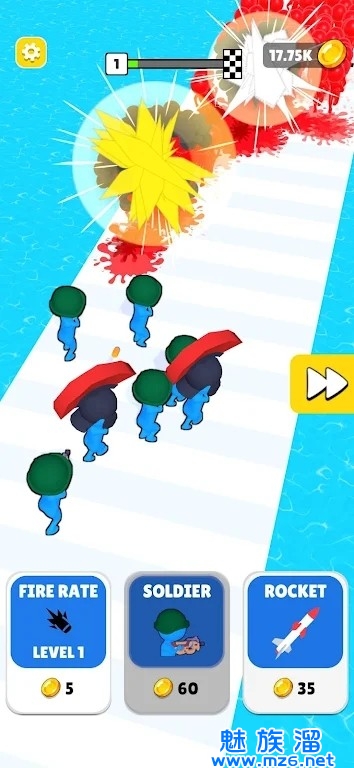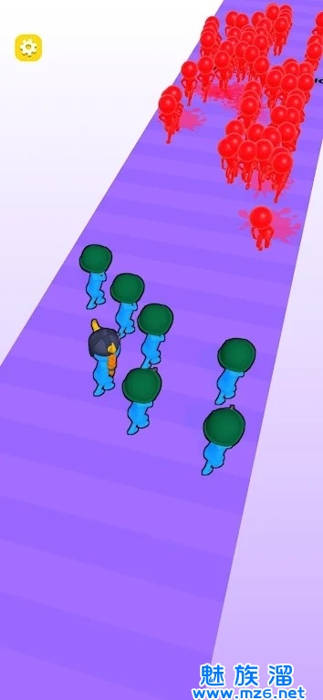 1、玩家可以通过收集相同颜色的方块来合并战士;