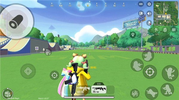 2、64km的大地图,有城镇,有野点,有树丛,有草丛,每局支持100名玩家对战。