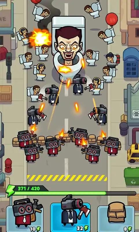 厕所僵尸大战是一款非常魔性的角色扮演类动作闯关游戏,游戏故事背景设定了在一个怪物的马桶人世界,玩家将会扮演一名马桶人,需要在厕所中消灭所有的僵尸才能幸存下来,游戏为玩家准备了各种各样的武器,手枪、步枪、手榴弹等枪械应有尽有,还有各种不同属性的技能供玩家选择,快来试试吧。