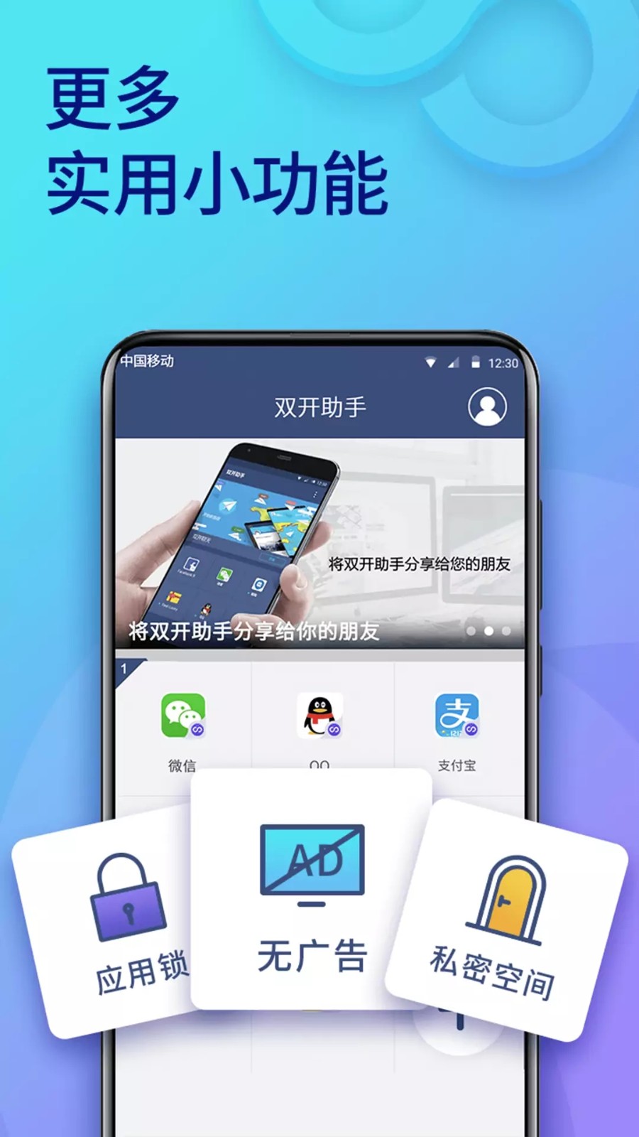 隐私空间及应用锁:双开助手会成为更懂你的隐私管家。