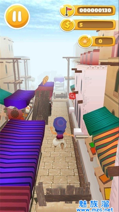 当你奔跑在沙漠城市的道路上时,你可以通过上下左右移动来避开障碍物和收集硬币