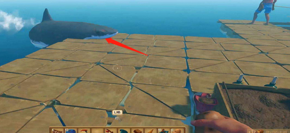2、用木锤界面第一行最后一个加固就行了,把最外圈加固之后鲨鱼就只会跟船,不会咬木筏了。