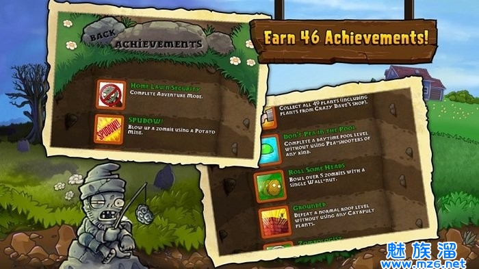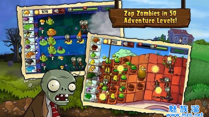 1、多达50个的冒险模式关卡设定,从白天到夜晚,从天台到游泳池,场景变化多样。