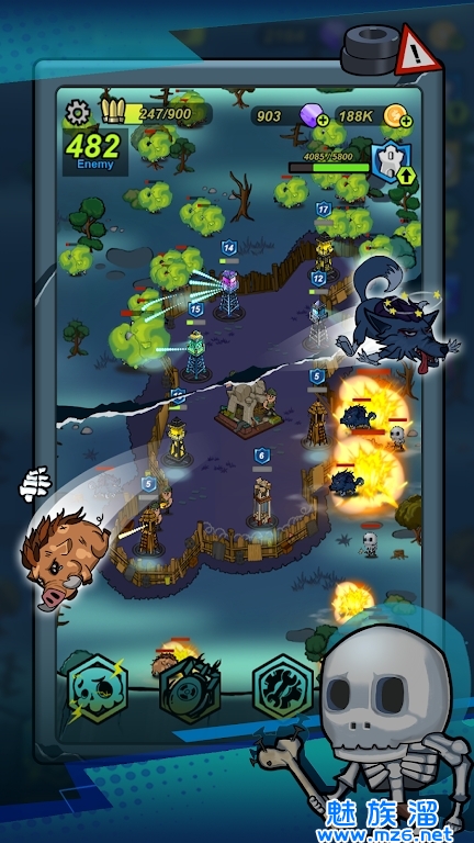 2、创新的塔防策略,玩家需布局防御塔与技能,制胜全局;