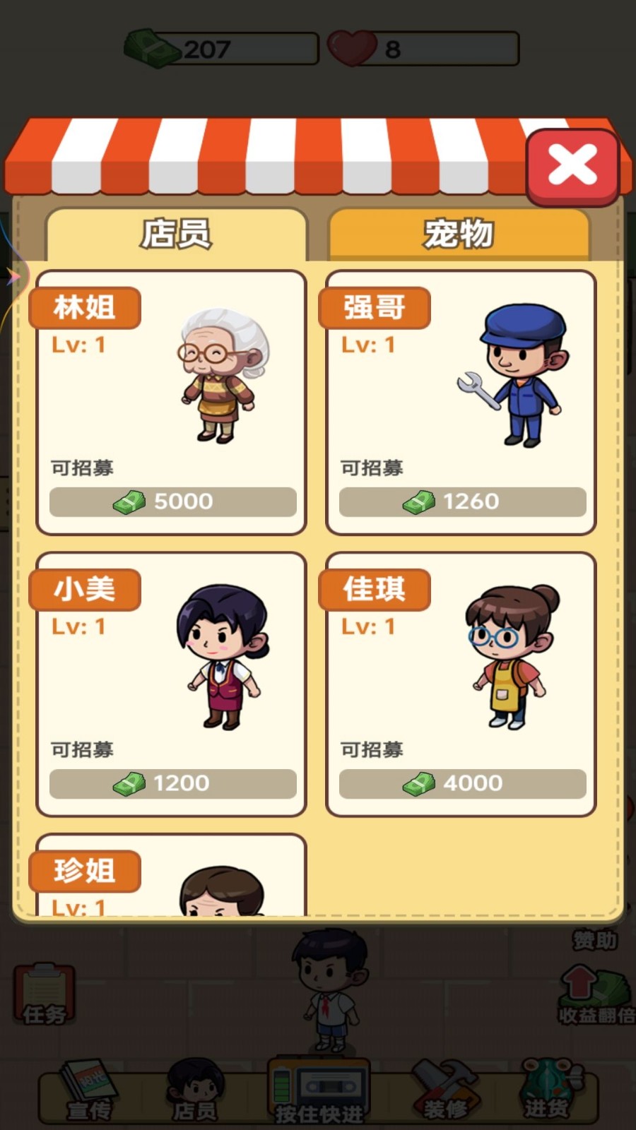 1、玩家可以通过购买更多的货架和货物来增加存储和销售能力;