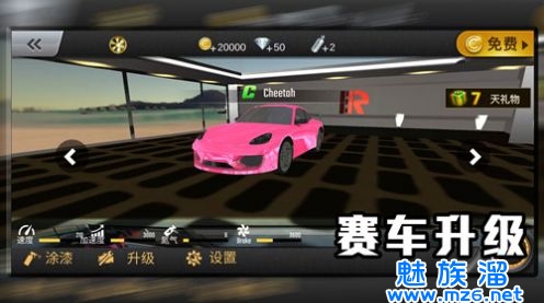 1、玩家通过不断的比赛获得赛车配件,对自己的赛车进行升级改装。