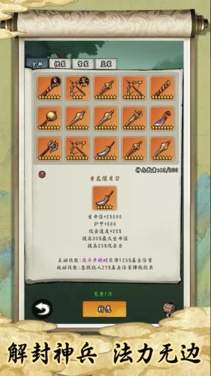 1、多样化的武将和成长系统,根据自己的喜好和策略选择合适的角色培养;