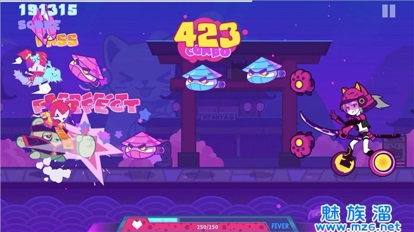 喵斯快跑免费破解版第一个版本收录了 30 首以上音乐,根据演奏难度设计 4 个不同的场景,