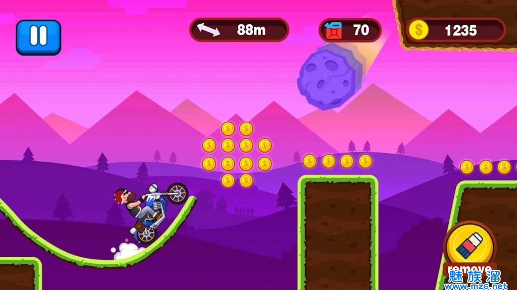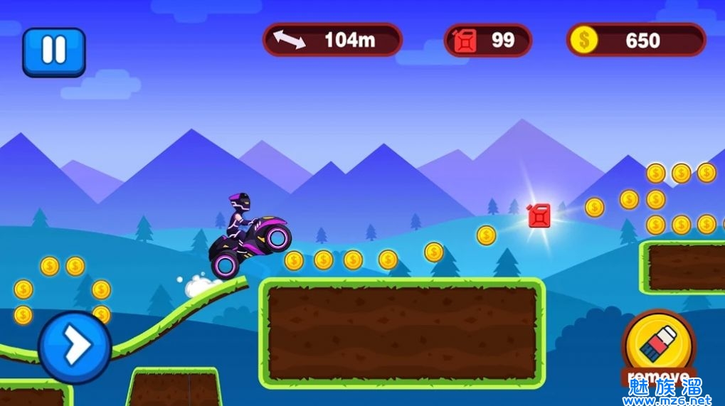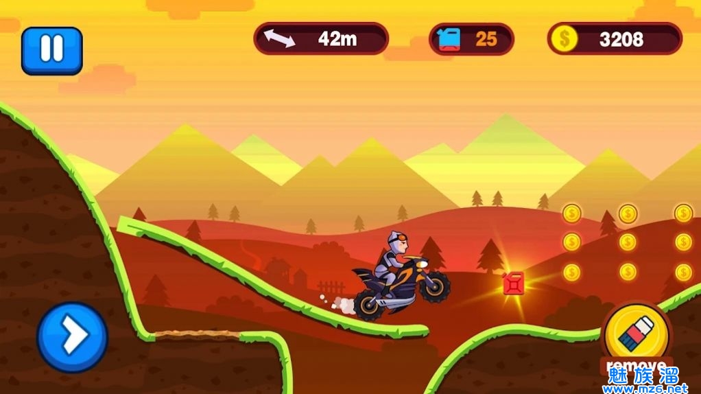尽可能多地吃到金币,以便可以解锁新的摩托车和关卡。