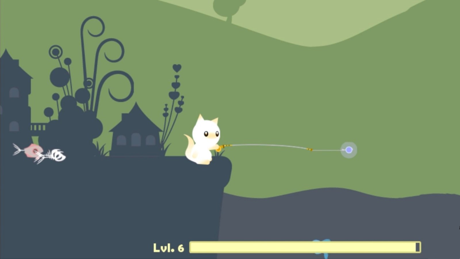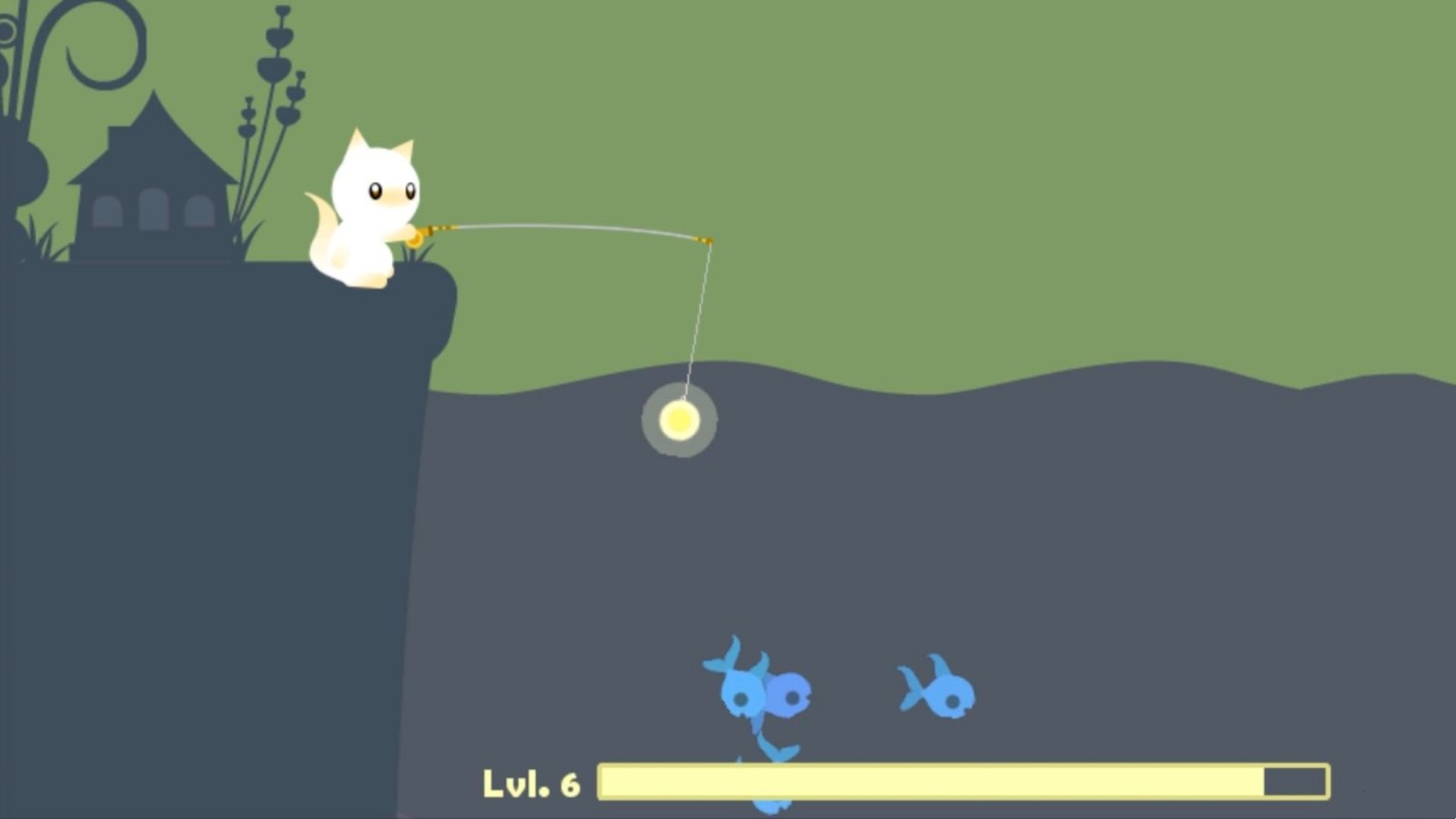 1、玩家只需要轻轻点击屏幕,小猫就可以将鱼竿放下,等待鱼儿上钩;